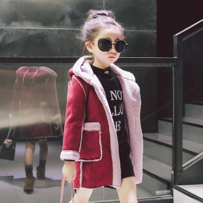 Baby Girls' Kids Clothing 2018 Winter Coat New Girls Overcoat Velvet Thickening Sets Coat Pure Color Fashion Jacket 4-12 Year
