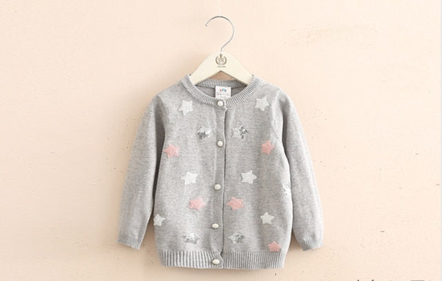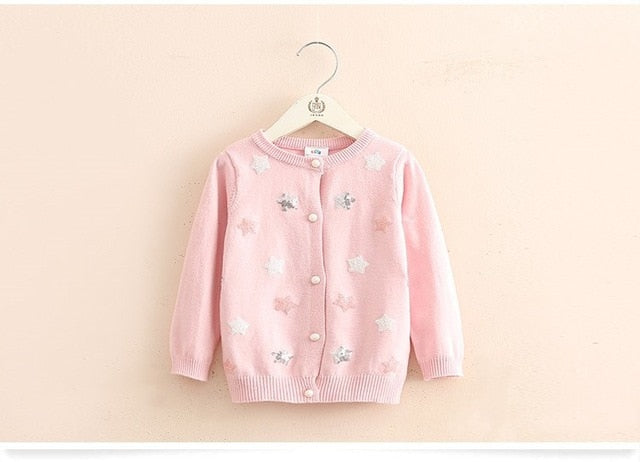 Baby Stars Knit Cardigan 2019 Spring Autumn Clothing New Girls' Children's Wear Coat Sweater Girl Cardigan V-Neck Casual Kids